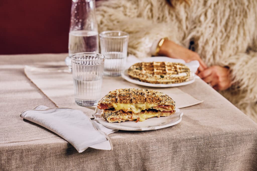 Elle revient tout droit des montagnes ! C’est bien le retour de notre gaufre salée Alpine. Appréciée par le plus grand nombre par son côté cheesy avec le fromage à raclette, le chutney d’oignons et le poulet, nous sommes certains qu’elle va réussir une année encore à satisfaire les papilles de tous.